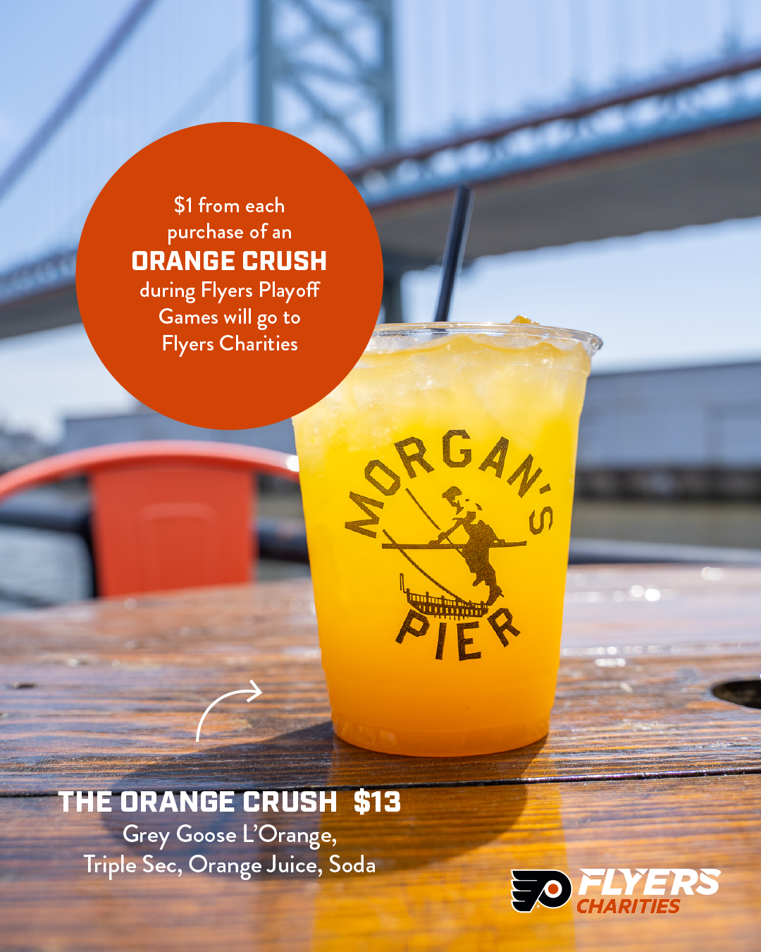 $1 from every Orange Crush sold will be donated to Flyers Charities, supporting youth programs and community initiatives across the Philadelphia region